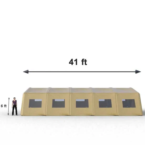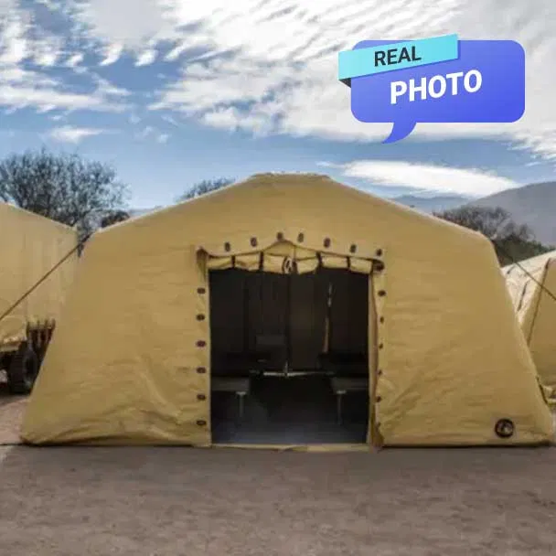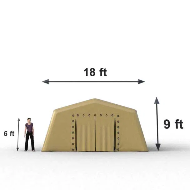 Heavy-duty inflatable low-pressure shelters are compact, lightweight, and modular. They can be deployed in less than six minutes with two to three people. Their speed and ease of deployment make them the ideal solution for emergency care, command posts or all-purpose emergency shelters. The resistance and robust construction of i2k’s Inflatable shelters along with a set of accessories ensure an effective use on any kind of land. The shelters can be connected to each other in four (4) directions. They are made of durable, fire and UV-resistant, PVC-coated military grade fabric. Independent air beams, outer cover and floor are constructed using high-frequency welding to keep then entire enclosure completely free of rain, dirt and debris. Available in four sizes and seven colors (tan, OD green, orange, white, yellow, gray and blue). Screened windows with privacy curtain, utility ports with drawstring. Units can be linked together to form larger structure